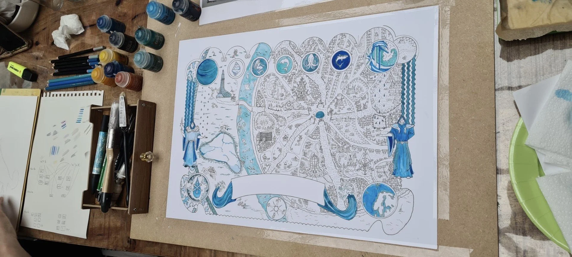 Aurélien LENGRAND et Déborah VILLATE LAFONTAINE sont une équipe dans la vie comme dans l’art. Amis avec l’autrice depuis plus de 10 ans, ils ont mis leur talents au service des quatre éléments en réalisant à la main la magnifique couverture du roman ainsi que la carte du monde d’Atlantide.